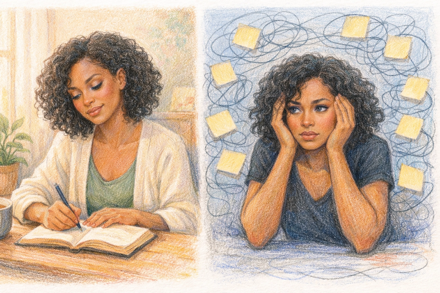 Overthinking feels scattered. Anxious. You’re caught in a loop, circling the same worries without moving toward resolution.